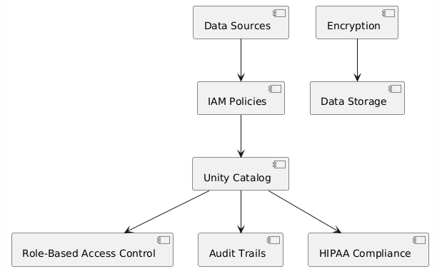 - Audit Trails: Unity Catalog tracks data lineage, ensuring compliance with HIPAA standards.