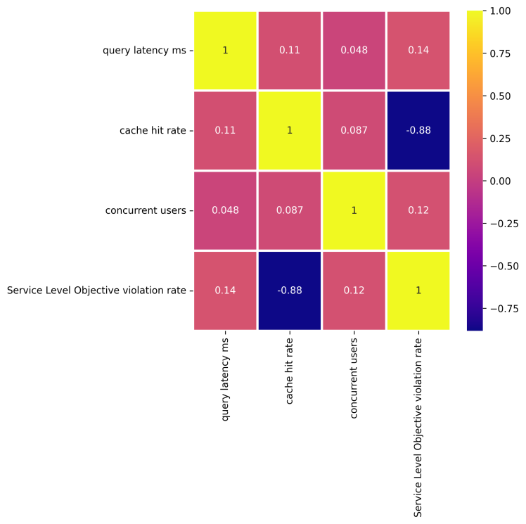 | query latency ms | cache hit rate | concurrent users | Service Level Objective violation rate | |